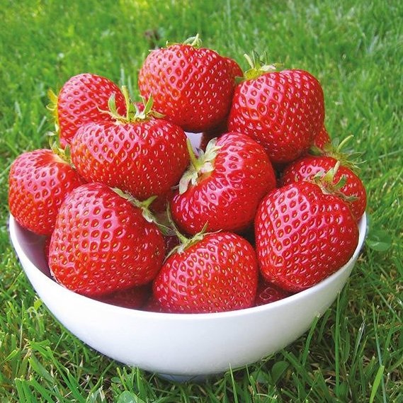 Ягоды крупные ягоды, до 5 см и массой 50 г. Форма коническая с тупым носиком, красивого красно-оранжевого цвета, блестящие. Цвет становится ярче по мере созревания. Ягоды 1 класса составляют основную часть урожая. Мякоть сочная, светлая, исключительно сладкая, без кислинки, с ноткой ананаса или киви. Кожица нежная, но прочная, с вдавленными семянками. Плоды легко, без повреждения, отделяются от чашелистиков. Ягоды не теряют своих качеств во время продолжительных дождей и транспортировки.