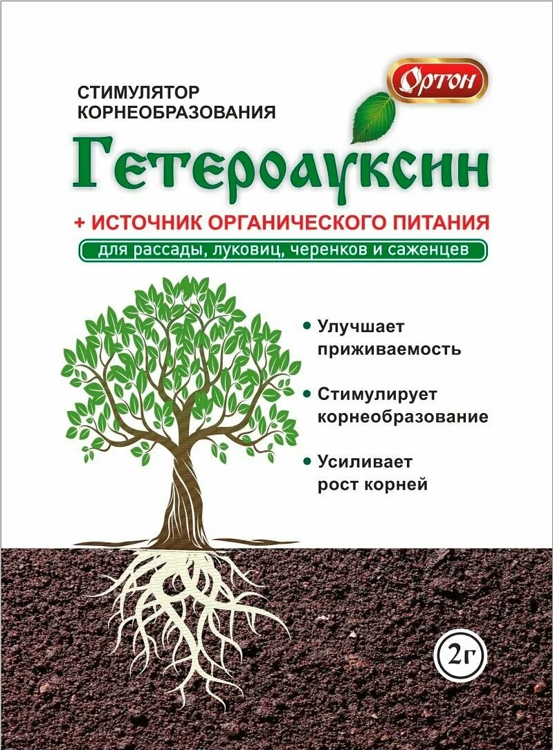Стимулирует корнеобразование и укоренение черенков и саженцев плодовых, ягодных, и декоративных культур.