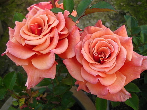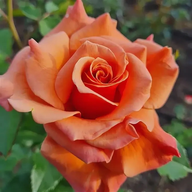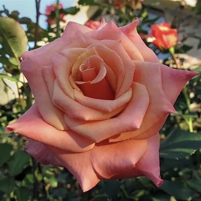 - Цветки: среднего размера, 8-10 см. в диаметре, чашевидной формы с высокой центральной частью, махровые, до 25 лепестков. Бутон тёмно-абрикосовый с примесью оранжевого цвета, цветок окрашен в бронзово-карамельный оттенок. Цветки располагаются в соцветиях по 3-5 штук.