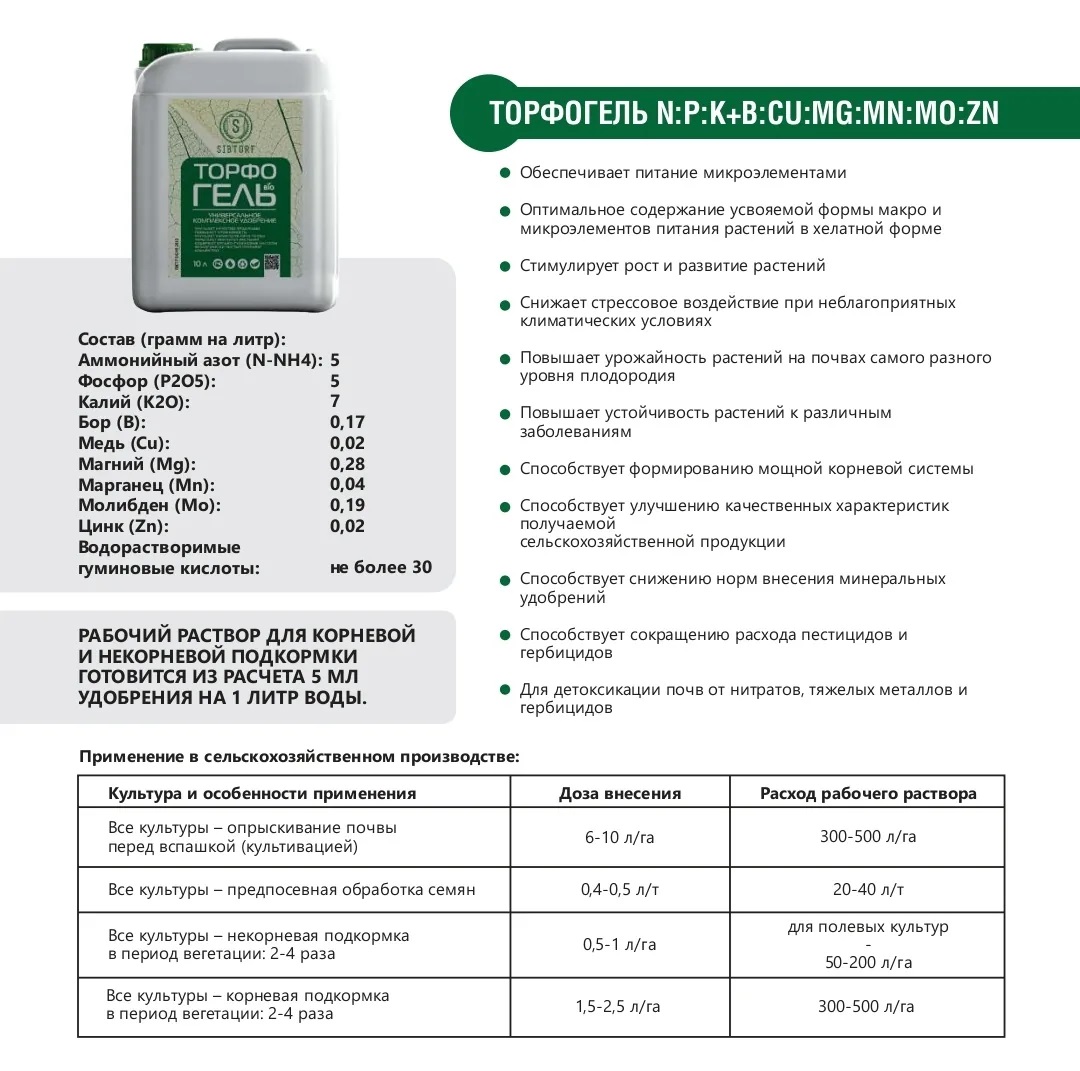Полностью природный безбалластный раствор гуминовых и фульвовых кислот в соединении с макроэлементами питания растений. Производится из торфа низинного типа высокой степени разложения по инновационной комбинированной механохимической и кавитационной технологии.